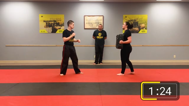 A 32-minute class with an energetic warm up, four ground-defense lessons, and a static-stretches cool down.